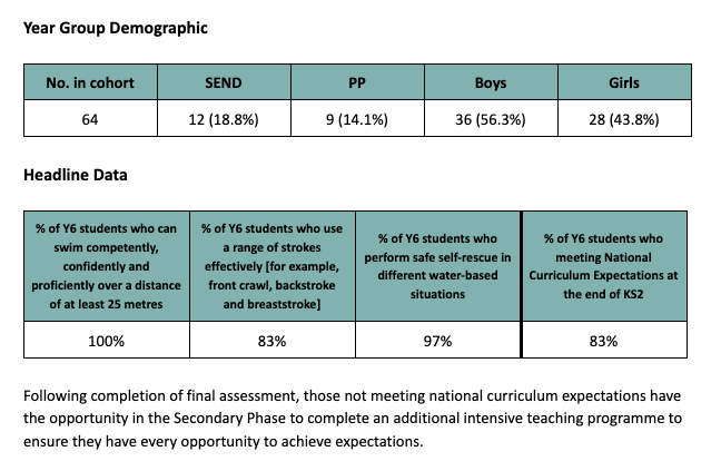 All schools must provide swimming instruction either in Key Stage 1 or Key Stage 2.